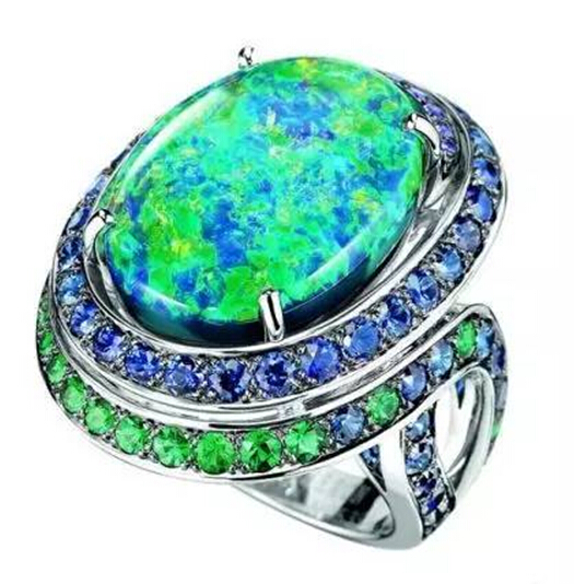 艺术家杜拜写了更富有诗意的描述:“当自然点缀完花朵,给彩虹着上色,把小鸟的羽毛染好的时候,她把从调色板上扫下来的颜料浇铸在欧泊里了”