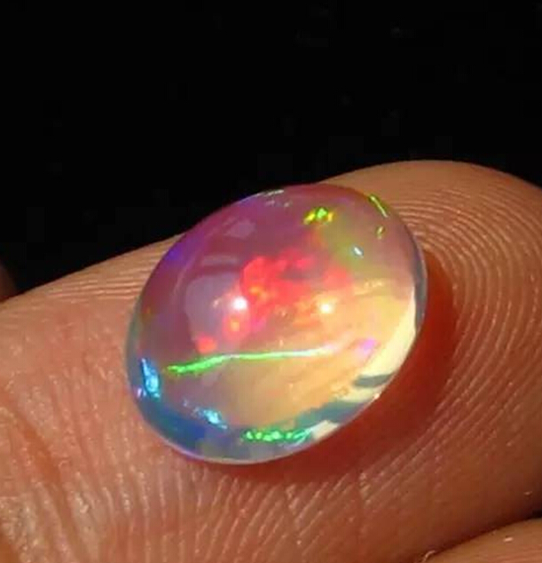 晶质欧泊可以是以上说到的任何一种,只是它的胚体色调是透明或半透明的。你甚至可以透过晶质欧泊看到背后的其他物品。晶质欧泊可以有深色和浅色的胚体色调,所以我们根据胚体色调的深浅不同把它们称作“晶质黑欧泊”或“晶质白欧泊”。